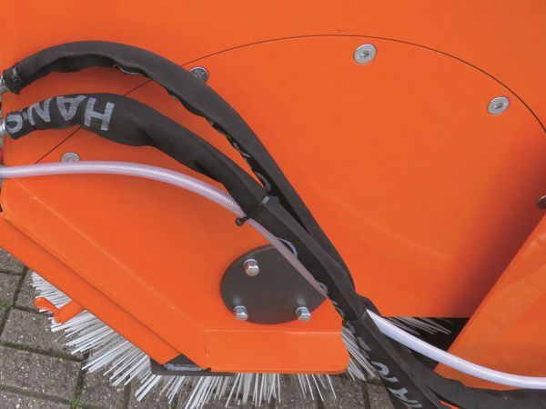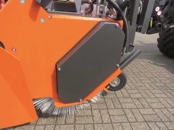 Höhenverstellung der Kehrwalze erfolgt über eine Kurbel